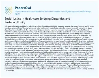 Social Justice in Healthcare: Bridging Disparities and Fostering Equity. (2023, Sep 13). Retrieved from https://hub.papersowl.com/examples/social-justice-in-healthcare-bridging-disparities-and-fostering-equity/
