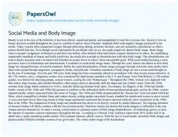 This essay will discuss the impact of social media on body image. It will explore how social media platforms can influence perceptions of beauty and self-esteem, and the psychological effects this can have, particularly on young people. At PapersOwl too, you can discover numerous free essay illustrations related to Body Image.