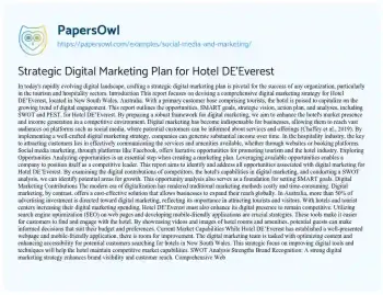 Strategic Digital Marketing Plan for Hotel DE’Everest. (2022, Feb 09). Retrieved from https://hub.papersowl.com/examples/social-media-and-marketing/