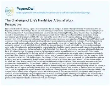 The Challenge of Life's Hardships: A Social Work Perspective. (2023, Sep 06). Retrieved from https://hub.papersowl.com/examples/social-workers-a-look-into-carla-baskins-journey/