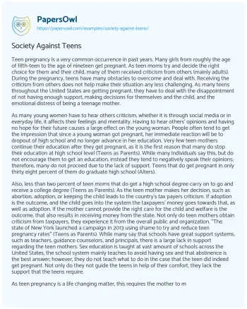 Society Against Teens. (2019, Sep 16). Retrieved from https://hub.papersowl.com/examples/society-against-teens/