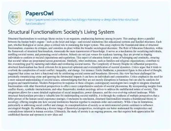 Structural Functionalism: Society's Living System. (2024, Feb 01). Retrieved from https://hub.papersowl.com/examples/sociologys-harmony-a-deep-dive-into-structural-functionalism/