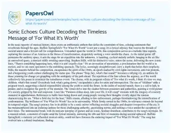 Sonic Echoes: Culture Decoding the Timeless Message of 'For What It's Worth'. (2024, Mar 01). Retrieved from https://hub.papersowl.com/examples/sonic-echoes-culture-decoding-the-timeless-message-of-for-what-its-worth/