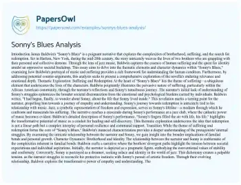In conclusion, James Baldwin's "Sonny's Blues" is a profound exploration of suffering, redemption, and the complexities of brotherhood. Through its rich thematic elements and nuanced character dynamics, the novella offers a compelling narrative that resonates with readers across generations. Baldwin's portrayal of music as a conduit for healing and self-discovery underscores the transformative power of artistic expression in navigating the challenges of identity and belonging. While acknowledging potential critiques, the enduring relevance of "Sonny's Blues" lies in its ability to evoke empathy and reflection, encouraging readers to engage with the intricacies of the human experience. Ultimately, Baldwin's narrative serves as a poignant reminder of the resilience of the human spirit and the importance of understanding and compassion in fostering personal and societal growth.