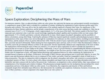 Space Exploration: Deciphering the Mass of Mars. (2023, Nov 24). Retrieved from https://hub.papersowl.com/examples/space-exploration-deciphering-the-mass-of-mars/