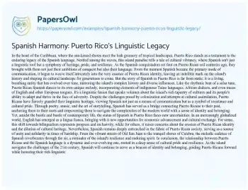 Spanish Harmony: Puerto Rico's Linguistic Legacy. (2024, Mar 25). Retrieved from https://hub.papersowl.com/examples/spanish-harmony-puerto-ricos-linguistic-legacy/