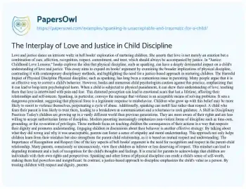 The Interplay of Love and Justice in Child Discipline. (2023, Mar 30). Retrieved from https://hub.papersowl.com/examples/spanking-is-unacceptable-and-traumatic-for-a-child/