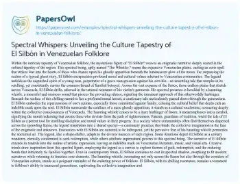Spectral Whispers: Unveiling the Culture Tapestry of El Silbón in Venezuelan Folklore. (2024, Jan 26). Retrieved from https://hub.papersowl.com/examples/spectral-whispers-unveiling-the-culture-tapestry-of-el-silbon-in-venezuelan-folklore/