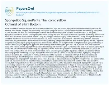 SpongeBob SquarePants: The Iconic Yellow Optimist of Bikini Bottom. (2023, Oct 16). Retrieved from https://hub.papersowl.com/examples/spongebob-squarepants-the-iconic-yellow-optimist-of-bikini-bottom/