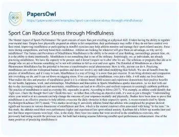 This essay explores how engaging in sports can reduce stress through the practice of mindfulness. It delves into the psychological benefits of physical activity, such as improved focus, reduced anxiety, and enhanced mood. The piece will examine different sports and their specific mindfulness techniques, highlighting how these activities promote mental well-being. The overview aims to provide insight into the connection between physical exertion and mental health, offering practical advice on incorporating mindfulness into various sports routines. You can also find more related free essay samples at PapersOwl about Cognition.