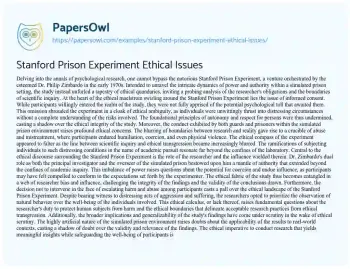 Stanford Prison Experiment Ethical Issues. (2024, Apr 29). Retrieved from https://hub.papersowl.com/examples/stanford-prison-experiment-ethical-issues/