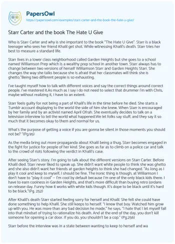 Starr Carter and the book The Hate U Give. (2021, Mar 22). Retrieved from https://hub.papersowl.com/examples/starr-carter-and-the-book-the-hate-u-give/