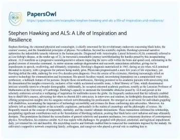 Stephen Hawking and ALS: A Life of Inspiration and Resilience. (2024, May 12). Retrieved from https://hub.papersowl.com/examples/stephen-hawking-and-als-a-life-of-inspiration-and-resilience/