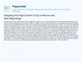 Stepping Into High School: A Day of Nerves and New Beginnings. (2023, Dec 28). Retrieved from https://hub.papersowl.com/examples/stepping-into-high-school-a-day-of-nerves-and-new-beginnings/
