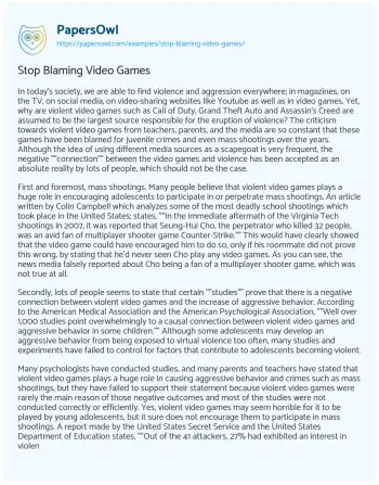 Stop Blaming Video Games. (2019, Jan 15). Retrieved from https://hub.papersowl.com/examples/stop-blaming-video-games/