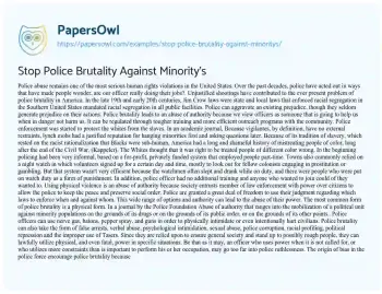 Stop Police Brutality Against Minority's. (2019, Apr 21). Retrieved from https://hub.papersowl.com/examples/stop-police-brutality-against-minoritys/