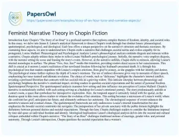 Feminist Narrative Theory in Chopin Fiction