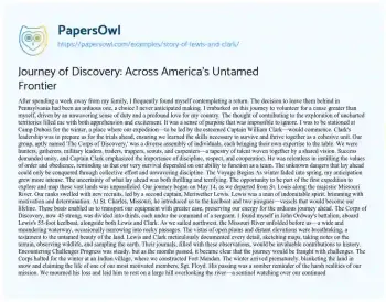 Journey of Discovery: Across America's Untamed Frontier. (2020, Jan 31). Retrieved from https://hub.papersowl.com/examples/story-of-lewis-and-clark/