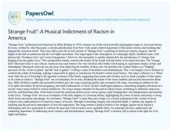 Strange Fruit": A Musical Indictment of Racism in America. (2024, Mar 18). Retrieved from https://hub.papersowl.com/examples/strange-fruit-a-musical-indictment-of-racism-in-america/