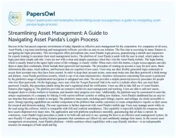 Streamlining Asset Management: A Guide to Navigating Asset Panda's Login Process. (2023, Dec 01). Retrieved from https://hub.papersowl.com/examples/streamlining-asset-management-a-guide-to-navigating-asset-pandas-login-process/