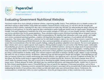 Evaluating Government Nutritional Websites. (2020, Mar 16). Retrieved from https://hub.papersowl.com/examples/strengths-and-weaknesses-of-government-nutrient-recommendations/