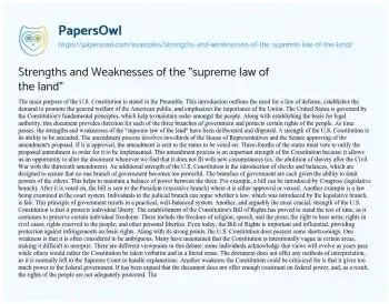 Strengths and Weaknesses of the "supreme law of the land". (2019, Jan 07). Retrieved from https://hub.papersowl.com/examples/strengths-and-weaknesses-of-the-supreme-law-of-the-land/