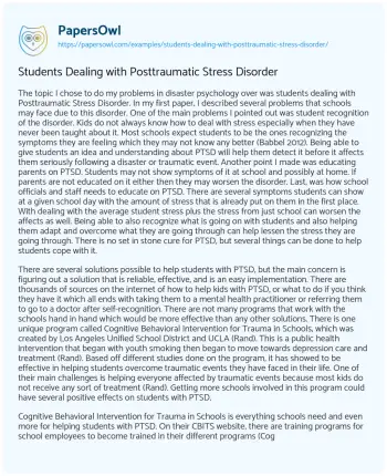 Students Dealing with Posttraumatic Stress Disorder. (2019, Nov 09). Retrieved from https://hub.papersowl.com/examples/students-dealing-with-posttraumatic-stress-disorder/