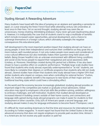 Styding Abroad: A Rewarding Adventure. (2021, Jun 27). Retrieved from https://hub.papersowl.com/examples/styding-abroad-a-rewarding-adventure/