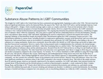 Substance Abuse Patterns in LGBT Communities. (2020, May 04). Retrieved from https://hub.papersowl.com/examples/substance-abuse-among-lgbt/