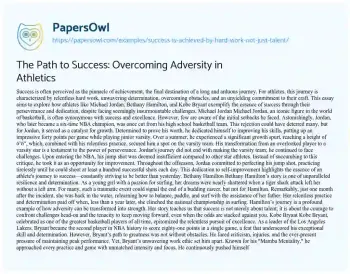 Success is often perceived as the pinnacle of achievement, the final destination of a long and arduous journey. For athletes, this journey is characterized by relentless hard work, unwavering determination, overcoming obstacles, and an unyielding commitment to their craft. This essay aims to explore how athletes like Michael Jordan, Bethany Hamilton, and Kobe Bryant exemplify the essence of success through their perseverance and dedication, despite facing seemingly insurmountable challenges. Michael Jordan
