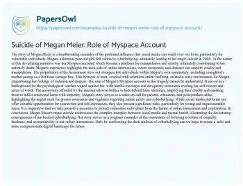 Suicide of Megan Meier: Role of Myspace Account. (2024, Apr 14). Retrieved from https://hub.papersowl.com/examples/suicide-of-megan-meier-role-of-myspace-account/
