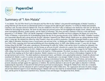 Summary of "I Am Malala". (2025, Jul 18). Retrieved from https://hub.papersowl.com/examples/summary-of-i-am-malala/