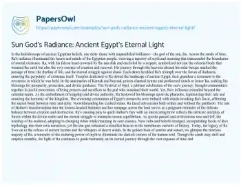 Sun God's Radiance: Ancient Egypt's Eternal Light. (2024, Mar 25). Retrieved from https://hub.papersowl.com/examples/sun-gods-radiance-ancient-egypts-eternal-light/