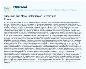 As a young child growing up on the Spokane Indian Reservation in Washington, I never imagined that a comic book about a superhero could have such a profound impact on my life. "Superman and Me" by Sherman Alexie is a powerful essay that explores the author's journey to literacy and empowerment through the lens of a comic book character. In this essay, I will reflect on my own experiences with literacy and how the power of storytelling has shaped my understanding of the world around me.