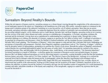 Surrealism: Beyond Reality's Bounds. (2024, Mar 25). Retrieved from https://hub.papersowl.com/examples/surrealism-beyond-realitys-bounds/