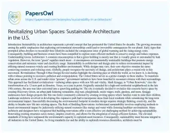 Revitalizing Urban Spaces: Sustainable Architecture in the U.S.. (2019, Nov 23). Retrieved from https://hub.papersowl.com/examples/sustainability-in-architecture/