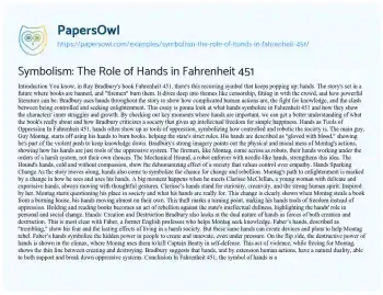 Symbolism: The Role of Hands in Fahrenheit 451. (2024, Sep 17). Retrieved from https://hub.papersowl.com/examples/symbolism-the-role-of-hands-in-fahrenheit-451/