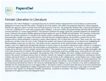 Female Liberation in Literature. (2020, Apr 04). Retrieved from https://hub.papersowl.com/examples/symbolizing-the-control-of-women-in-the-yellow-wallpaper/