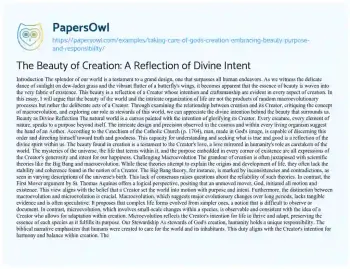 The Beauty of Creation: A Reflection of Divine Intent. (2023, Aug 11). Retrieved from https://hub.papersowl.com/examples/taking-care-of-gods-creation-embracing-beauty-purpose-and-responsibility/