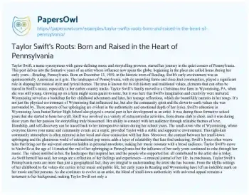 Taylor Swift's Roots: Born and Raised in the Heart of Pennsylvania. (2024, May 12). Retrieved from https://hub.papersowl.com/examples/taylor-swifts-roots-born-and-raised-in-the-heart-of-pennsylvania/
