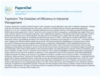 Taylorism: The Evolution of Efficiency in Industrial Management. (2024, Jan 09). Retrieved from https://hub.papersowl.com/examples/taylorism-the-evolution-of-efficiency-in-industrial-management/