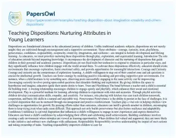 Teaching Dispositions: Nurturing Attributes in Young Learners. (2022, Aug 19). Retrieved from https://hub.papersowl.com/examples/teaching-disposition-about-imagination-creativity-and-others-dispositions/