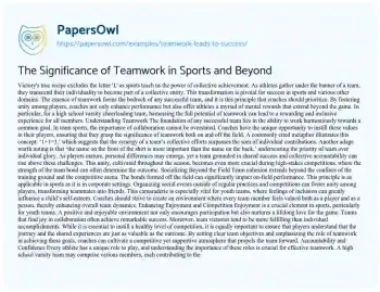 The Significance of Teamwork in Sports and Beyond. (2021, Jun 27). Retrieved from https://hub.papersowl.com/examples/teamwork-leads-to-success/