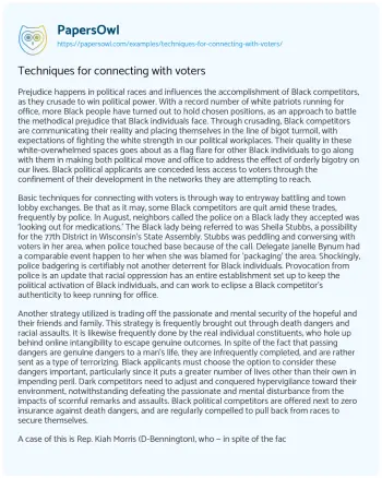 Techniques for connecting with voters. (2021, Nov 30). Retrieved from https://hub.papersowl.com/examples/techniques-for-connecting-with-voters/