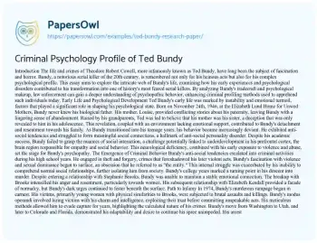 Criminal Psychology Profile of Ted Bundy. (2021, May 04). Retrieved from https://hub.papersowl.com/examples/ted-bundy-research-paper/