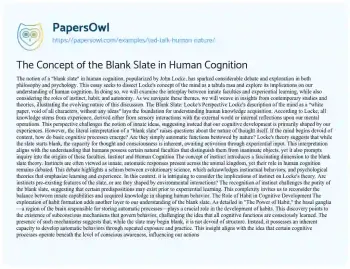 The Concept of the Blank Slate in Human Cognition. (2020, Mar 30). Retrieved from https://hub.papersowl.com/examples/ted-talk-human-nature/