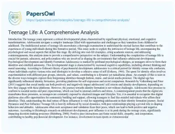 Teenage Life: A Comprehensive Analysis. (2024, Dec 27). Retrieved from https://hub.papersowl.com/examples/teenage-life-a-comprehensive-analysis/