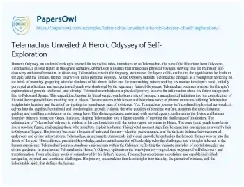 Telemachus Unveiled: A Heroic Odyssey of Self-Exploration. (2024, Jan 16). Retrieved from https://hub.papersowl.com/examples/telemachus-unveiled-a-heroic-odyssey-of-self-exploration/