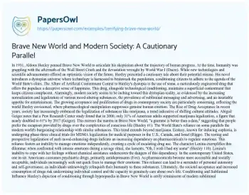 Brave New World and Modern Society: A Cautionary Parallel. (2021, Nov 24). Retrieved from https://hub.papersowl.com/examples/terrifying-brave-new-world/
