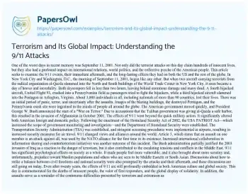 Terrorism and Its Global Impact: Understanding the 9/11 Attacks. (2023, Nov 24). Retrieved from https://hub.papersowl.com/examples/terrorism-and-its-global-impact-understanding-the-9-11-attacks/